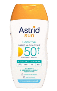 Kem chống nắng Astrid SUN Sensitive Sun Lotion dành cho da nhạy cảm trên 50 tuổi với công nghệ chống nắng tiên tiến (UVA/UVB/IR*/VL*) ngay lập tức cung cấp cho da khả năng bảo vệ quang phổ rộng cao chống lại tác hại của tia UV, tia hồng ngoại và ánh sáng khả kiến. Công thức được phát triển đặc biệt mang lại khả năng chống nắng an toàn ngay cả cho làn da rất nhạy cảm. Kem được làm giàu với dầu gai dầu BIO từ các nguồn bền vững, giúp làm dịu và cấp ẩm cho da trong khi tắm nắng.