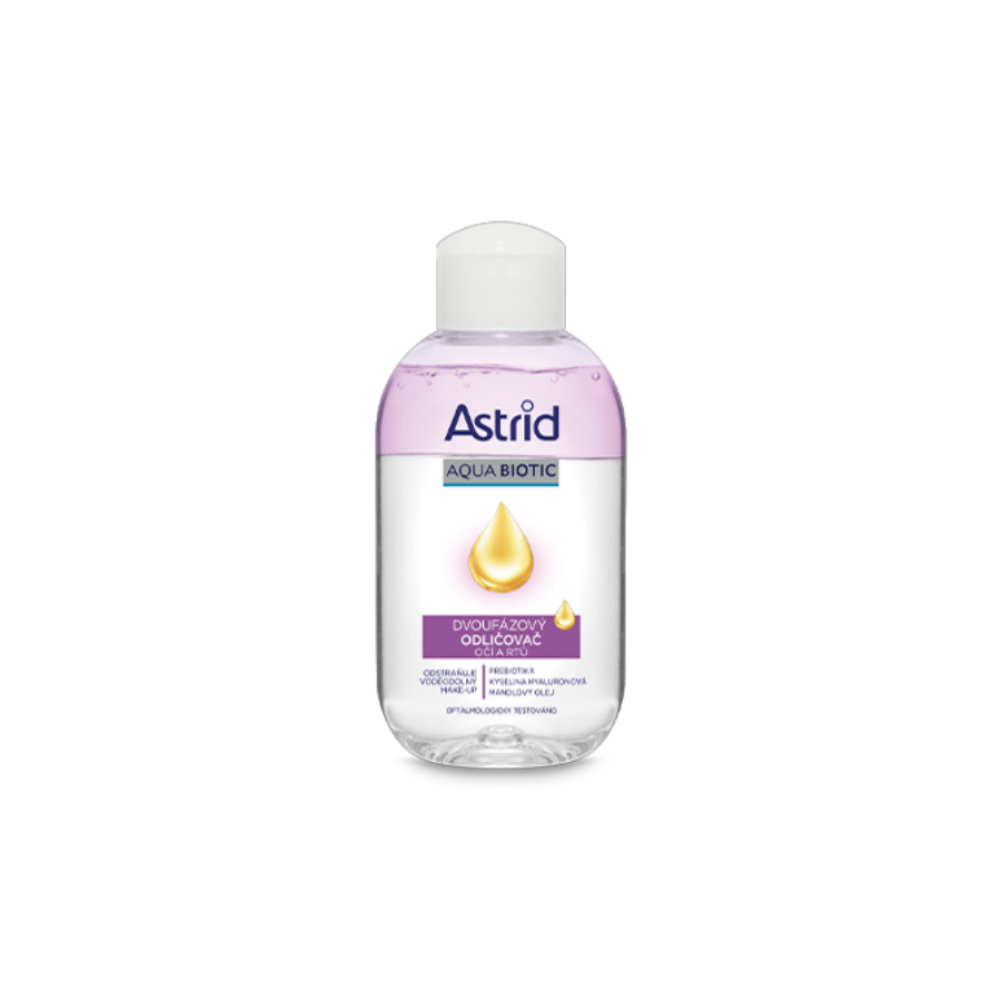 Nước tẩy trang mắt và môi Astrid Aqua Biotic Two-Phase Eye and Lip Make-up Remover giúp loại bỏ lớp trang điểm chống nước hiệu quả và nhẹ nhàng, đồng thời chăm sóc vùng da quanh mắt và môi. Công thức giàu axit hyaluronic và dầu hạnh nhân giúp duy trì độ ẩm tự nhiên của da, mang lại làn da sạch sẽ, mịn màng và được bảo vệ hoàn hảo. Các prebiotics có trong sản phẩm chăm sóc hệ vi sinh vật đường ruột và hỗ trợ cân bằng hệ vi sinh vật đường ruột khỏe mạnh. Được bổ sung axit hyaluronic và dầu hạnh nhân, giúp giữ ẩm cho da, mang lại làn da sạch sẽ, mềm mại và được bảo vệ hoàn hảo.